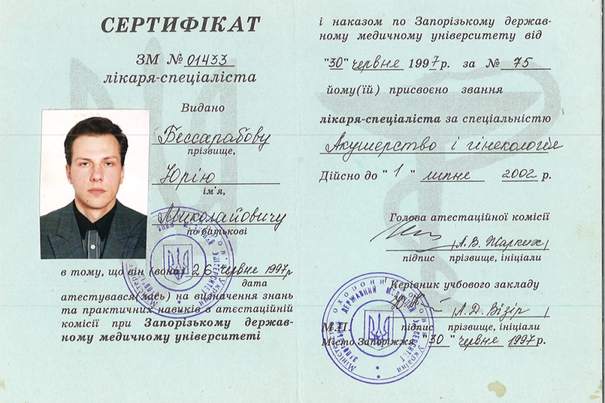 - 1994 – 1997: врач-интерн по акушерству и гинекологии «Роддом №4» г.Запорожья