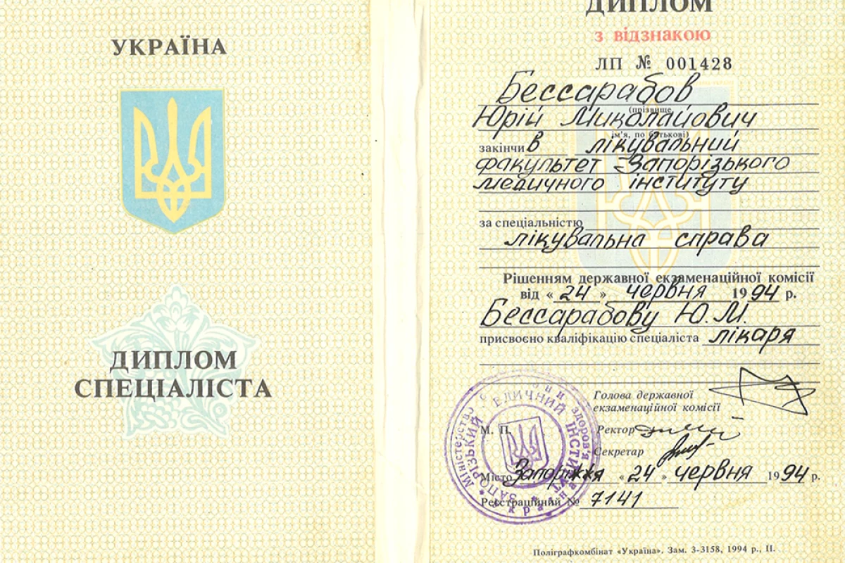 - 1994: Запорожский медицинский институт, "Лечебное дело";