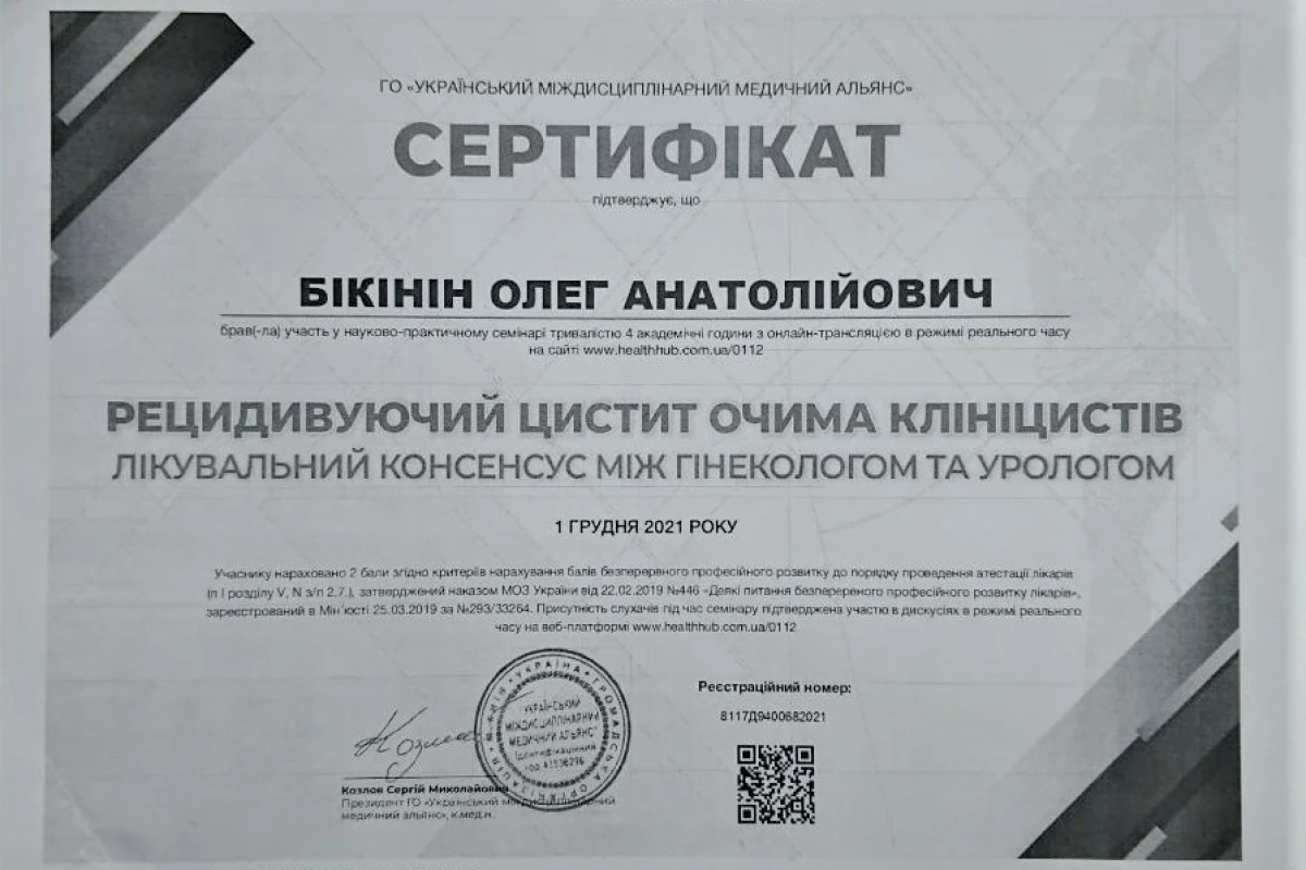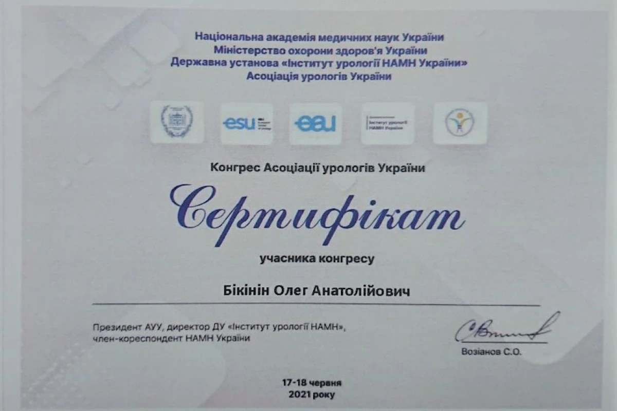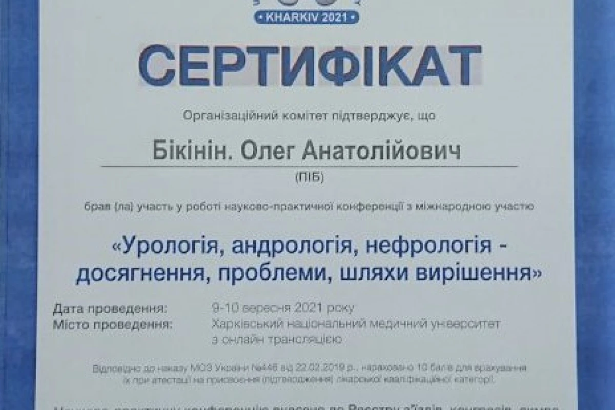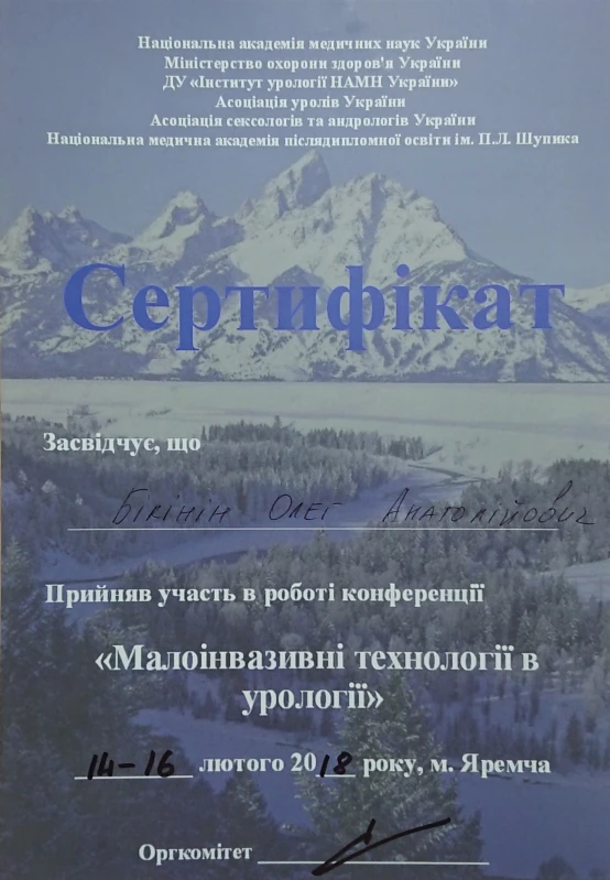 - 2011- 2021: "Малоинвазивные технологии в урологии", г. Яремча