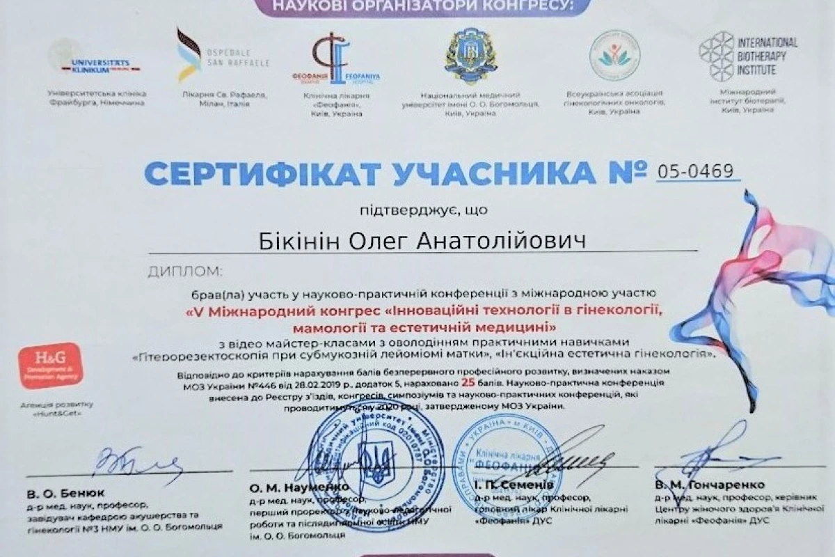 - 2020-2021: Международный конгресс "Инновационные технологии в эстетической медицине, гинекологии, маммологии", Киев