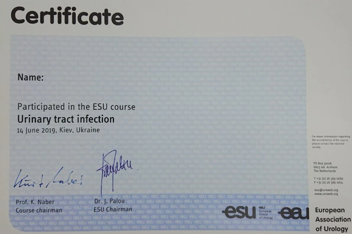 - 2018, 2019, 2021: Европейские школы урологии, Киев
