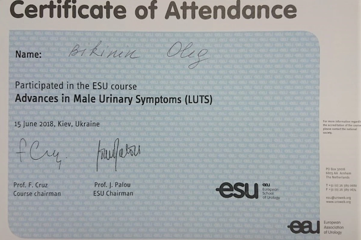 - 2014: "Актуальные вопросы онкоурологии", "Неотложная урология", Донецкий национальный медицинский университет