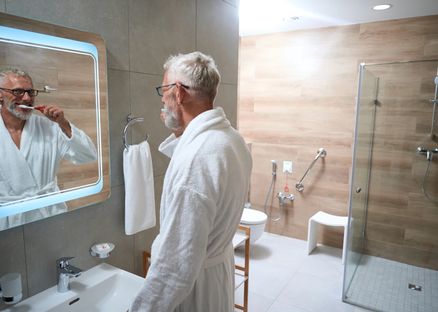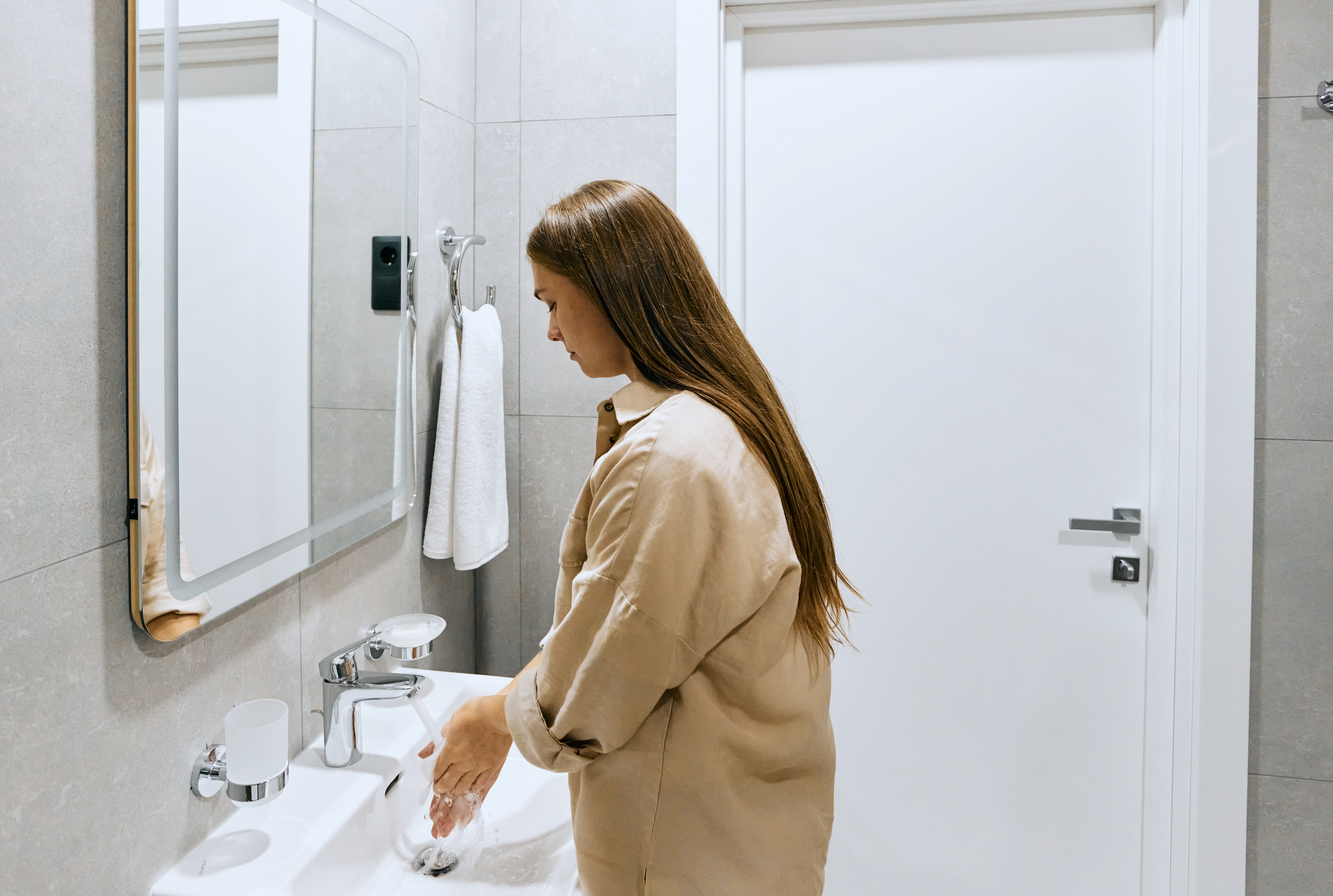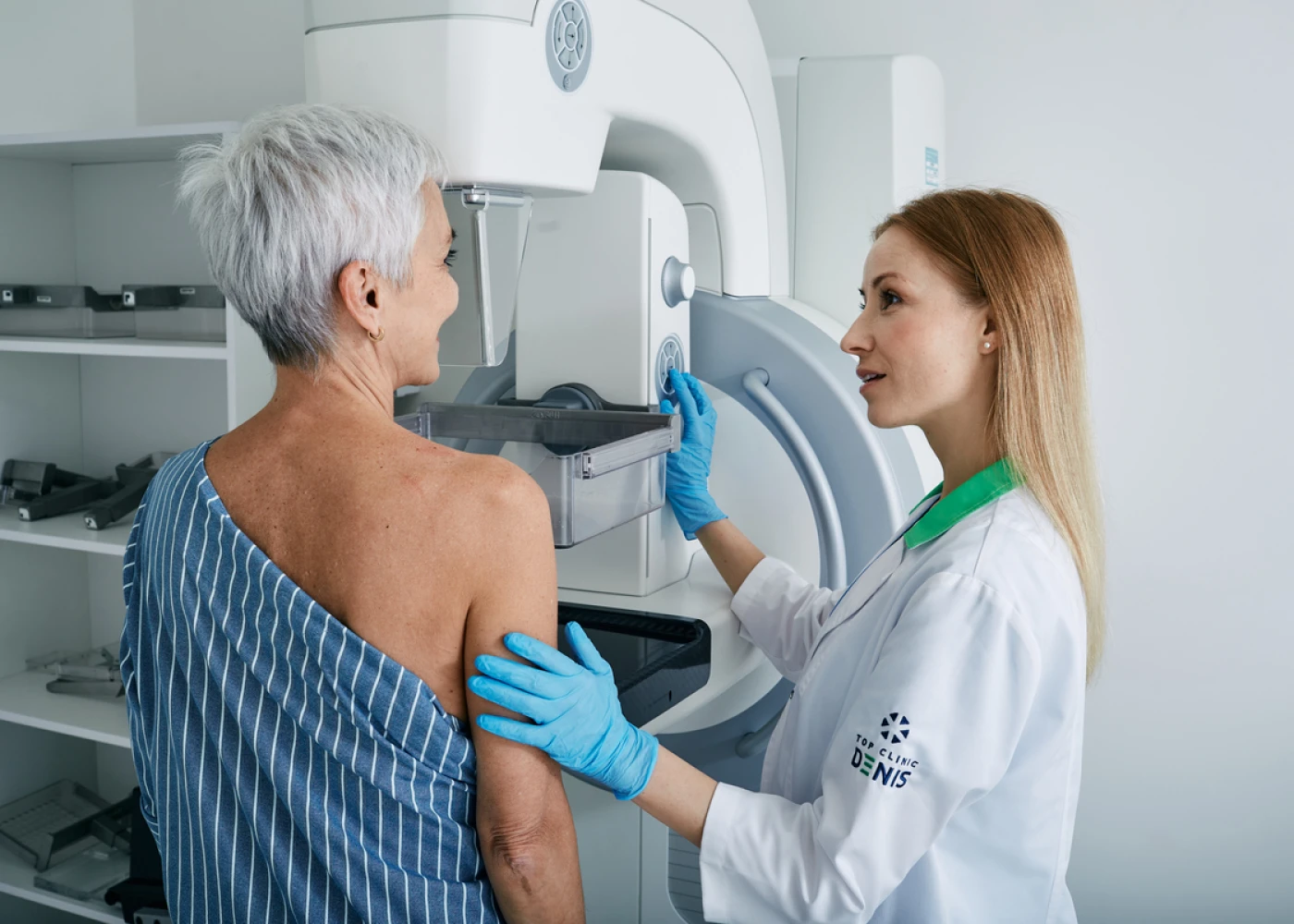 В раздевалке при смотровом кабинете есть всё необходимое, чтобы переодеться и привести себя в порядок, в том числе одноразовая одежда для осмотра и средства гигиены.