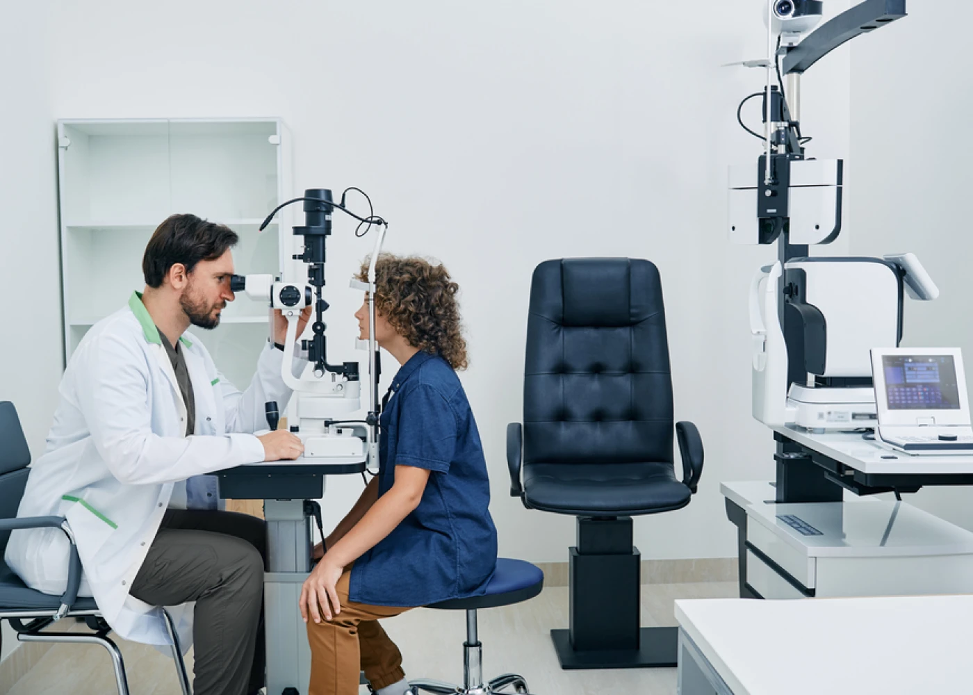 Кабинет офтальмолога оснащен оборудованием для визометрии, тонометрии, офтальмоскопии, биомикроскопии и других инструментальных исследований