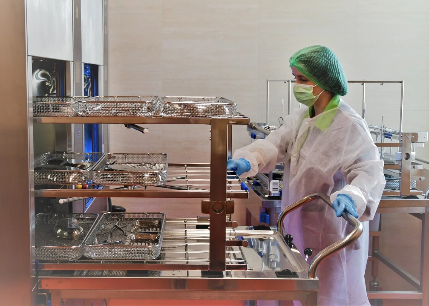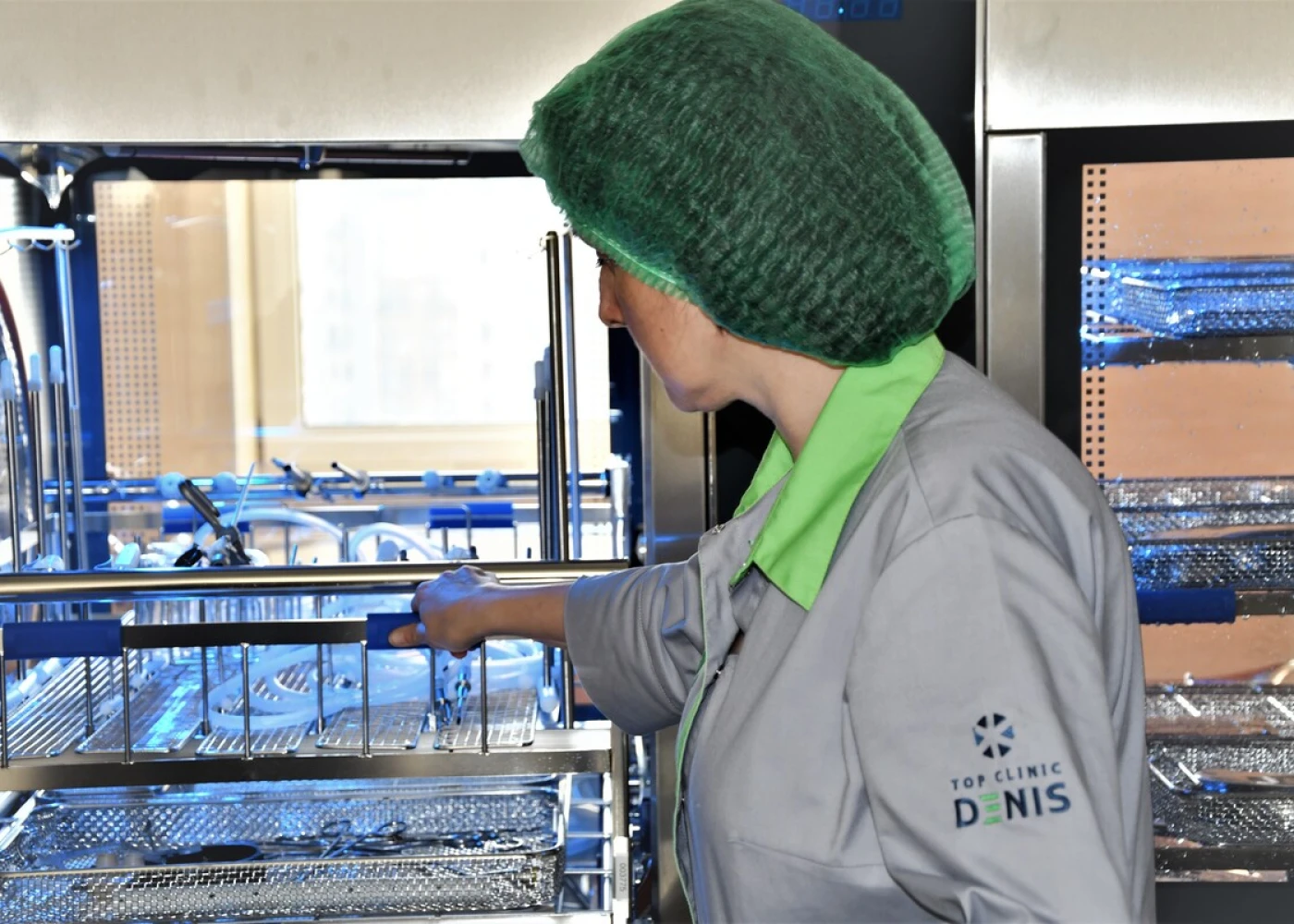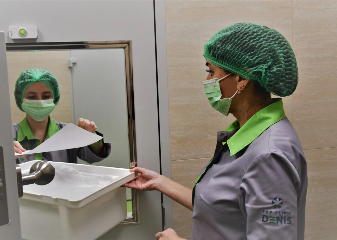 В зеленой зоне стерильный упакованный инструмент сортируют и выдают для дальнейшего использования в отделениях клиники.
