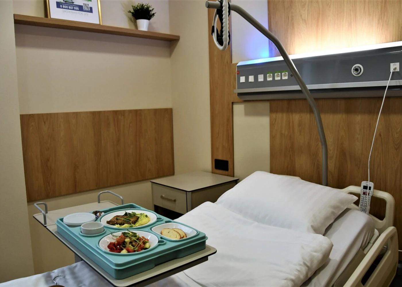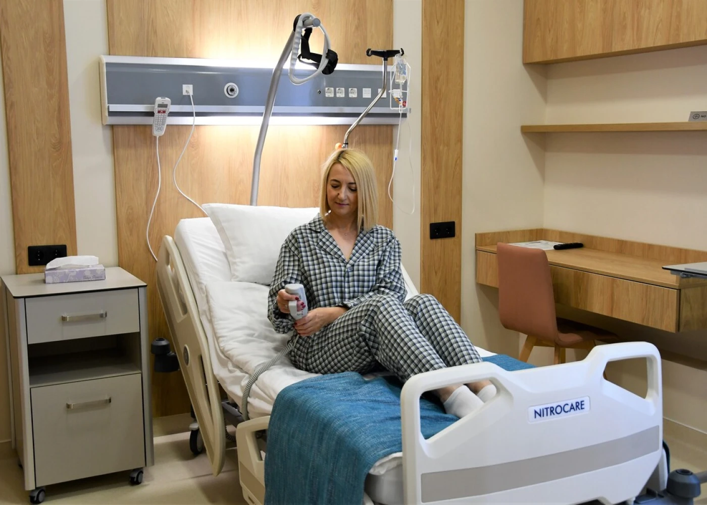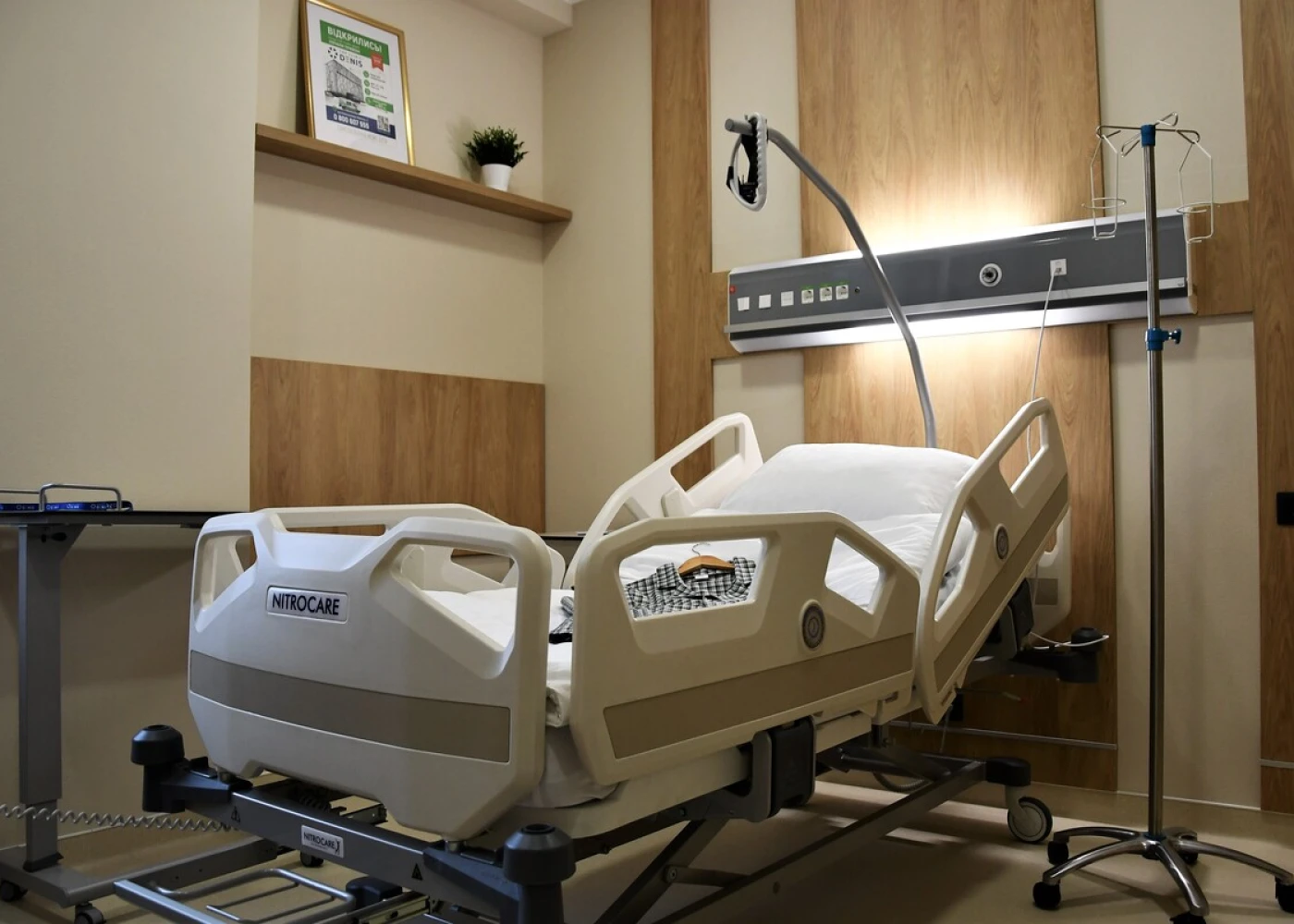 Номера оборудованы функциональными кроватями Nitrocare (Турция), регулируемыми для максимального удобства. Многофункциональный пульт позволяет не только переключать каналы ТВ, но и регулировать кровать, освещение, вызывать персонал