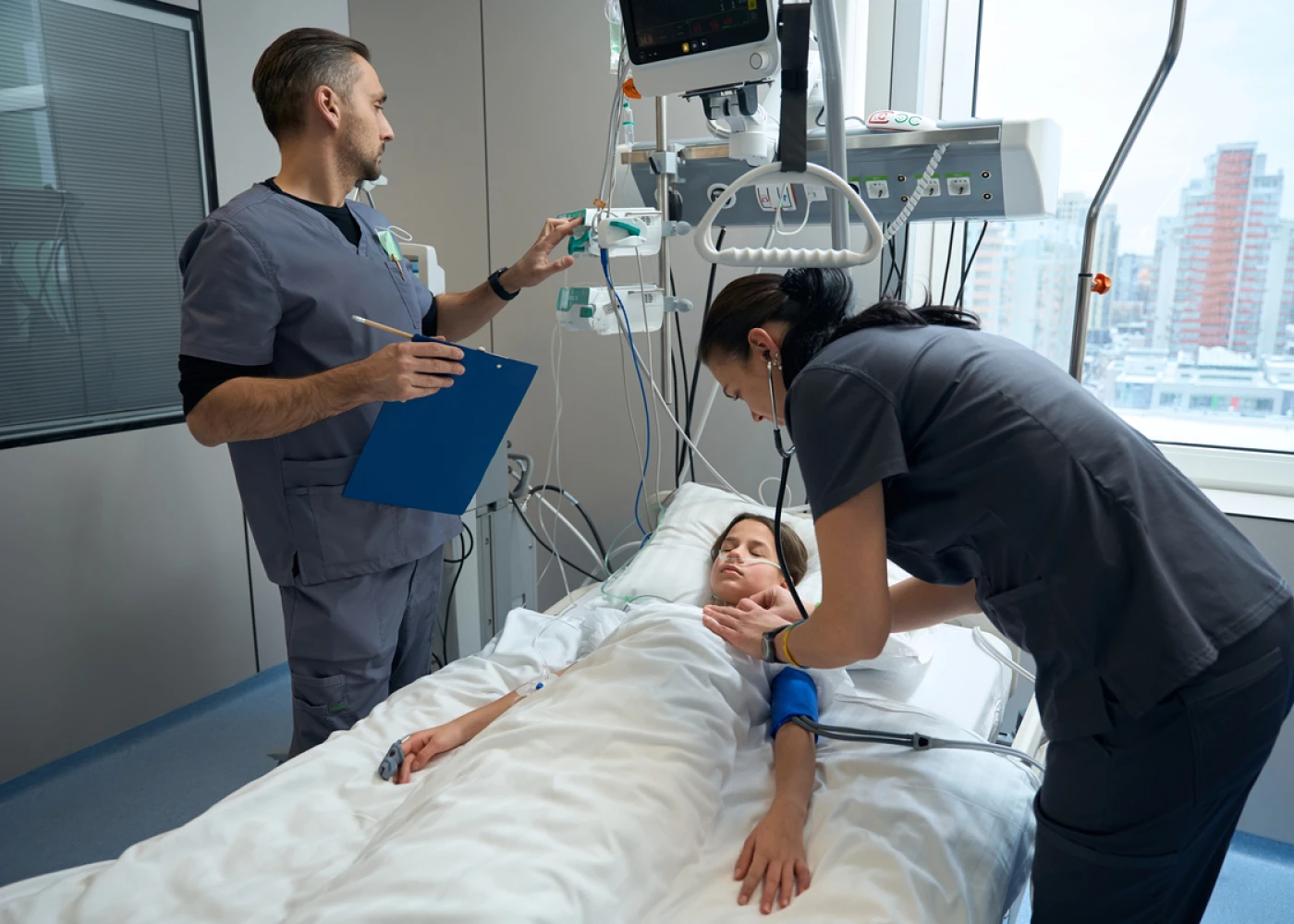 Отделение интенсивной терапии оснащено современным оборудованием для оказания помощи пациентам в критических состояниях, интенсивной терапии и восстановления после хирургических операций.