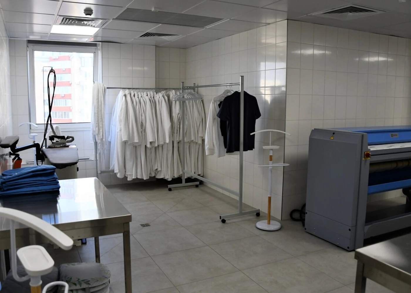 Гладильное помещение оборудовано прессом для глажки, парогенератором, гладильным столом с пароотсосом.