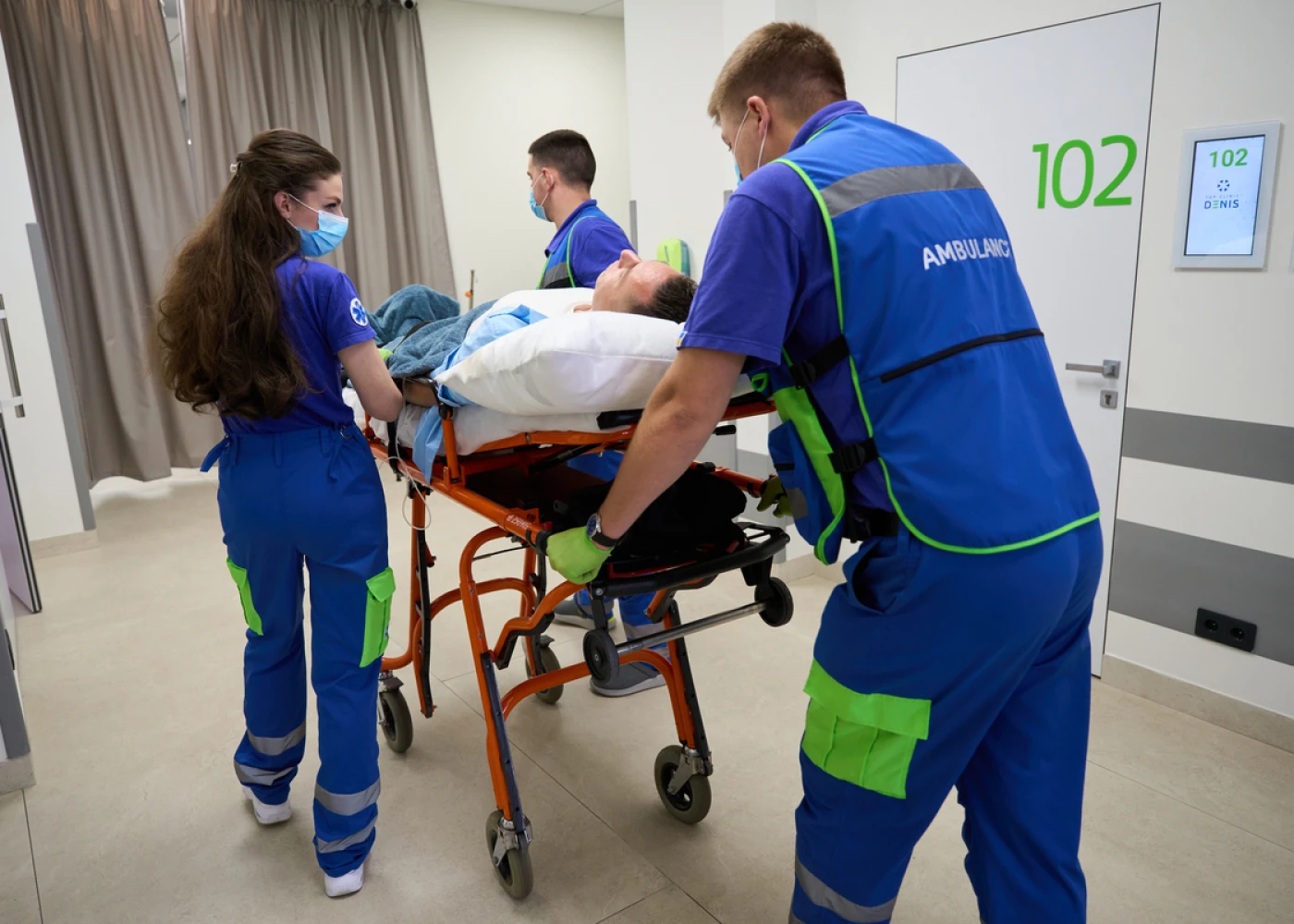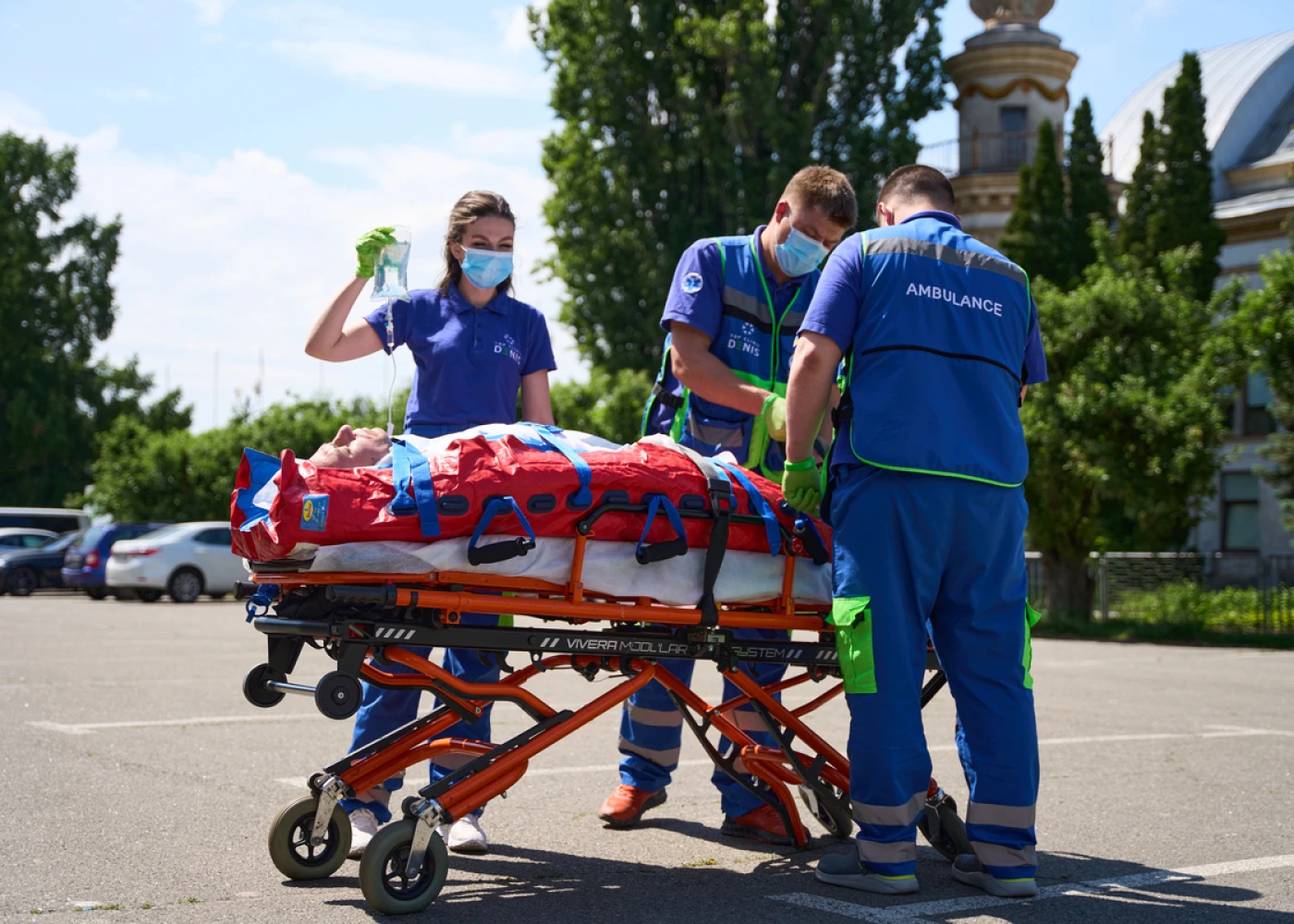 Машины оснащены гидравлической кушеткой, вакуумным матрасом для надежной фиксации пациентов с тяжелыми травмами, каталкой для транспортировки лежачих пациентов, каталкой для сидячих пациентов