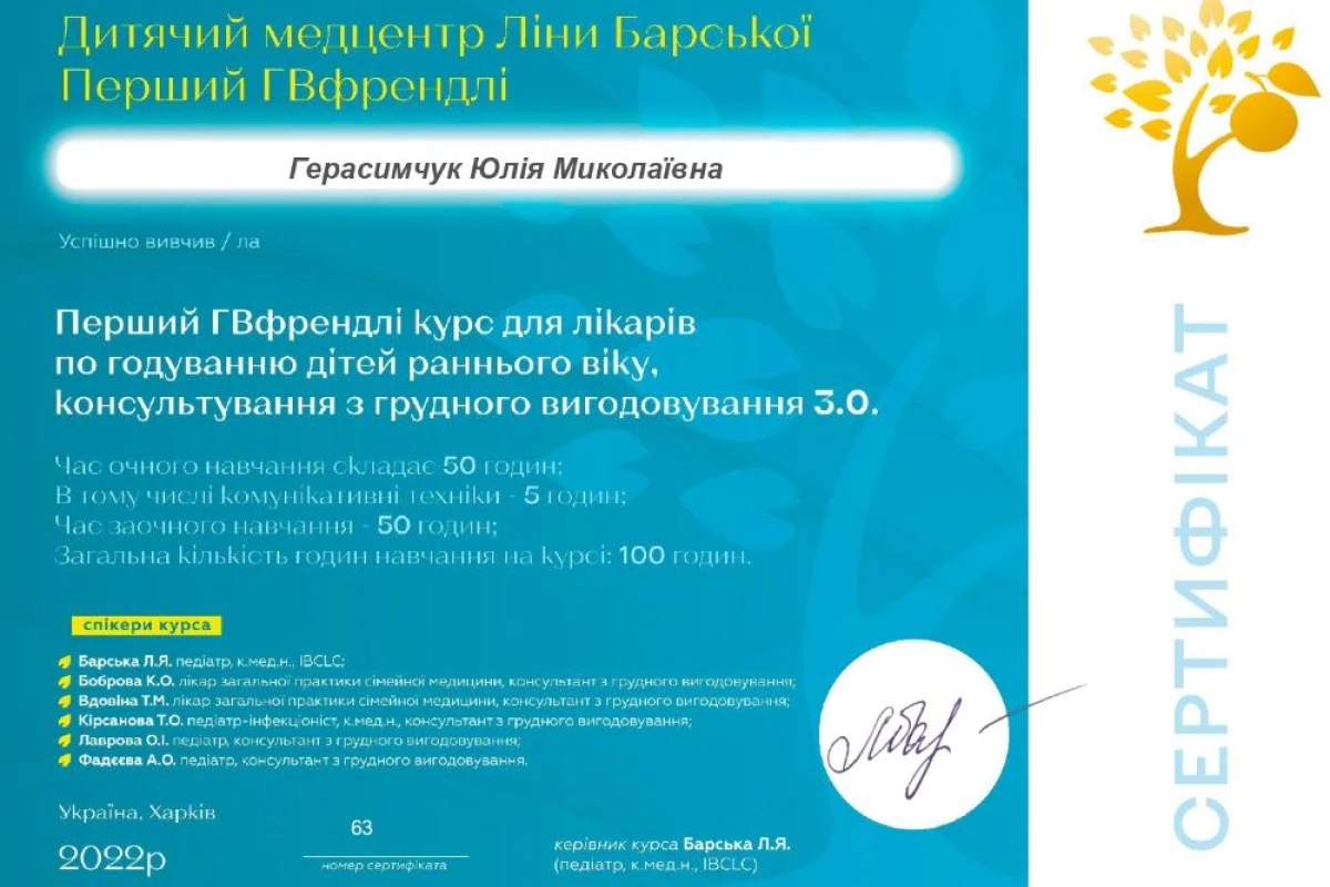 - курс «Первый ГВфрендли курс для врачей по вскармливанию детей раннего возраста, консультированию по грудному вскармливанию 3.0» от Детского медцентра Лины Барской «Первый ГВфрендли»