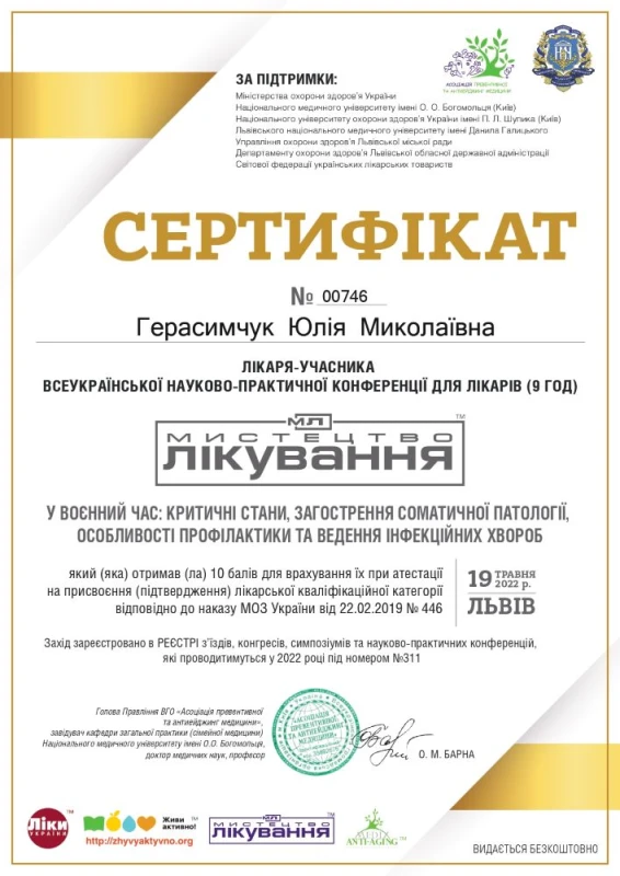 - Всеукраинская научно-практическая конференция для врачей «Искусство лечения в военное время: критические состояния, обострение соматической патологии, особенности профилактики и ведения инфекционных болезней»