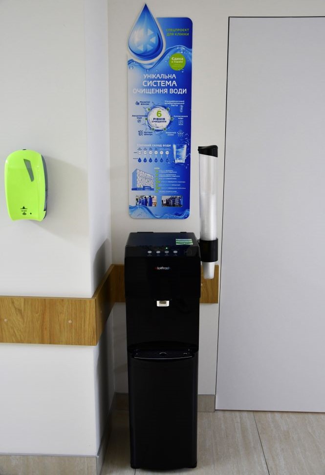 Если вам приходилось бывать в нашей клинике, вы могли заметить не совсем обычные кулеры для воды. Сменные бутыли в них отсутствуют, а питьевая вода подается централизованно.