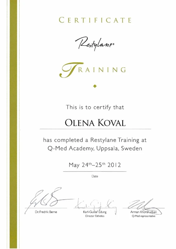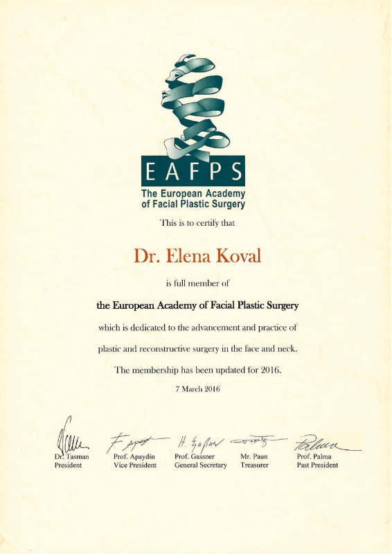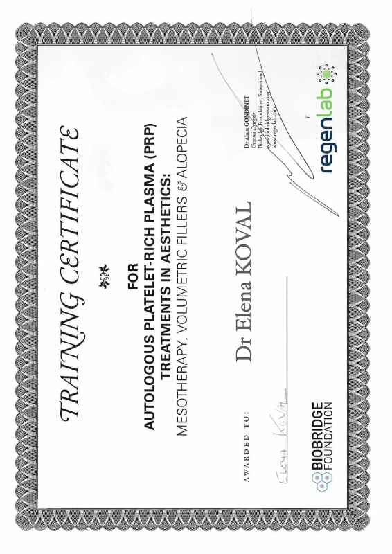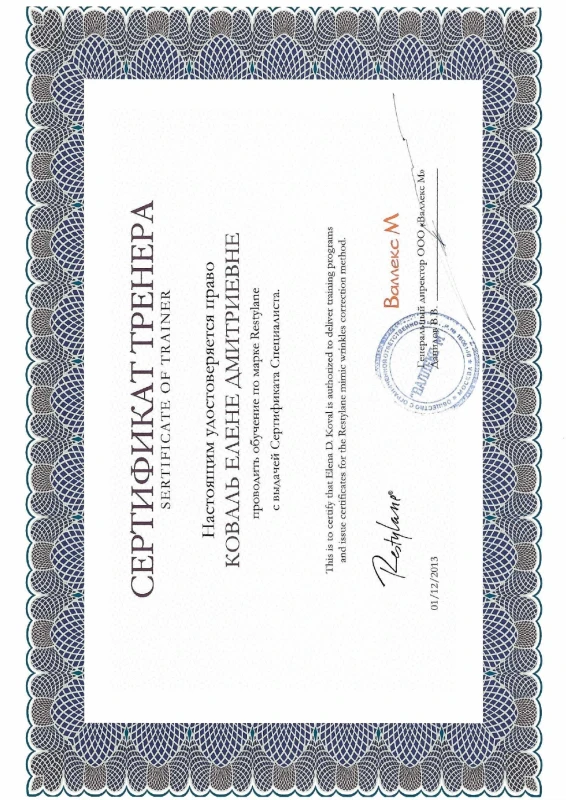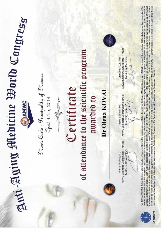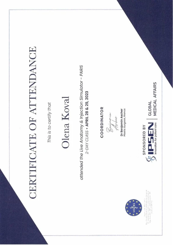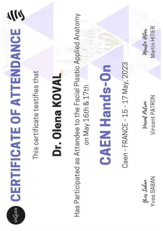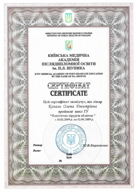 - 2020: Украина, Национальный Медицинский Университет им.А.А.Богомольца — ТУ по пластической и реконструктивной хирургии.