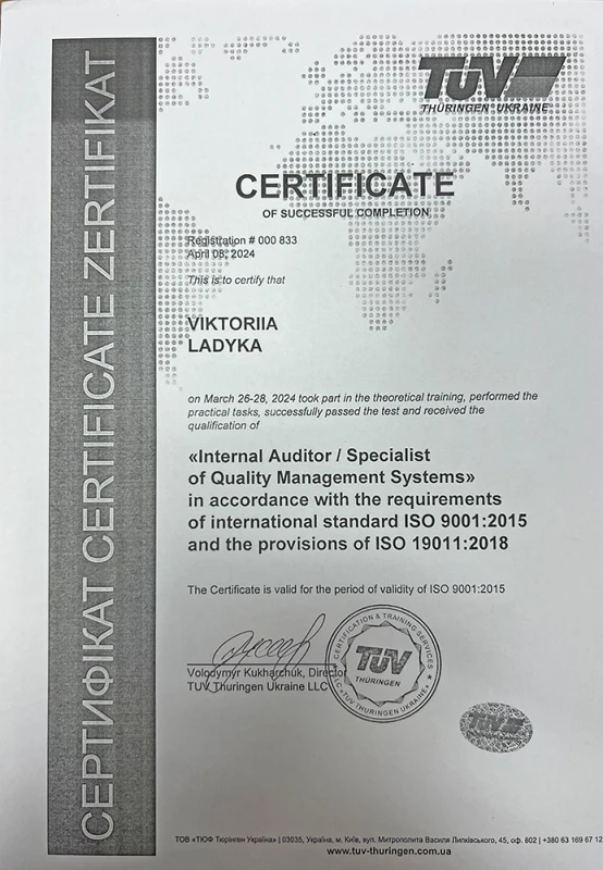 - 2025: прошла обучение в Киевской школе государственного управления имени С.Нижного по учебной программе «Ассистент управленца: эффективная поддержка руководителя».