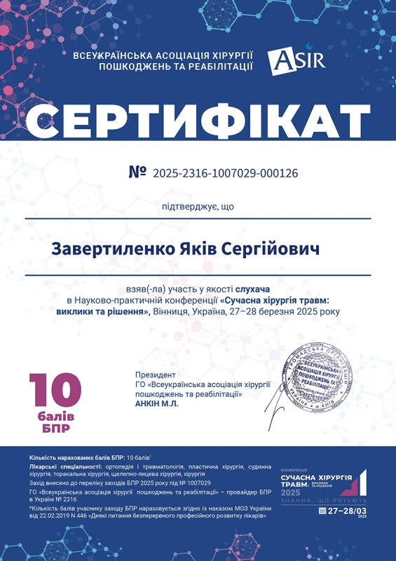 - Научно-практическая конференция "Современная хирургия травм: вызовы и решения" Винница, 27-28 марта 2025 года