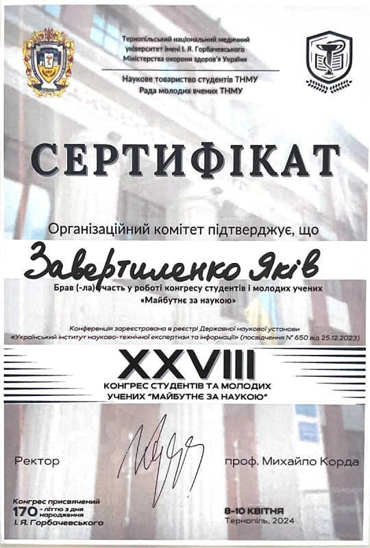 - XXVIII Конгресс студентов и молодых ученых "Будущее за наукой" 8-10 апреля 2024 года, Тернополь