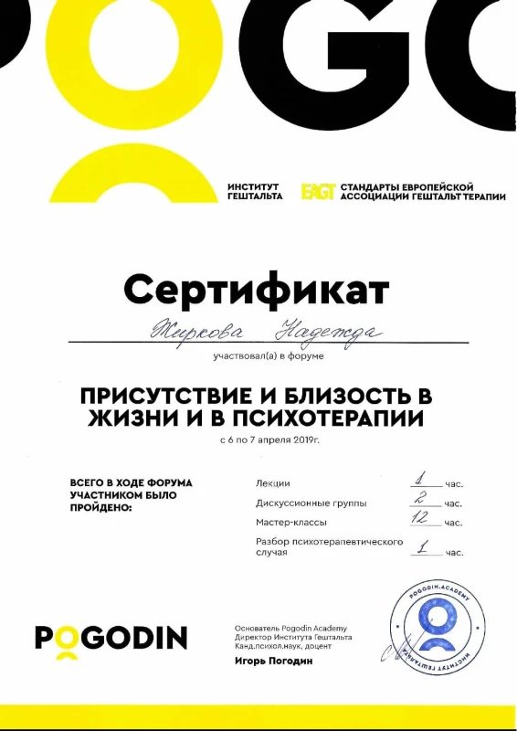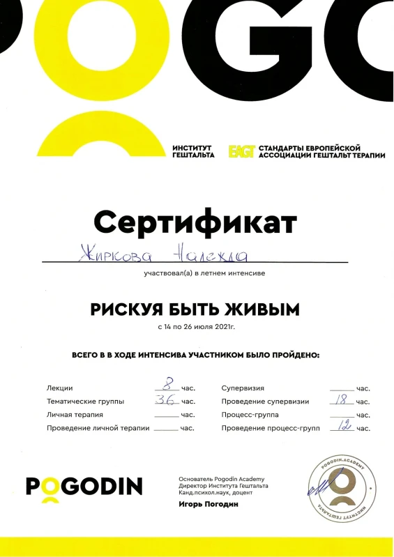 - III степень обучения «Усовершенствование в гештальт терапии», Pogodin Aсademy