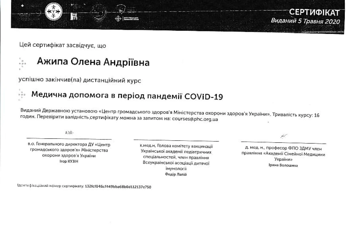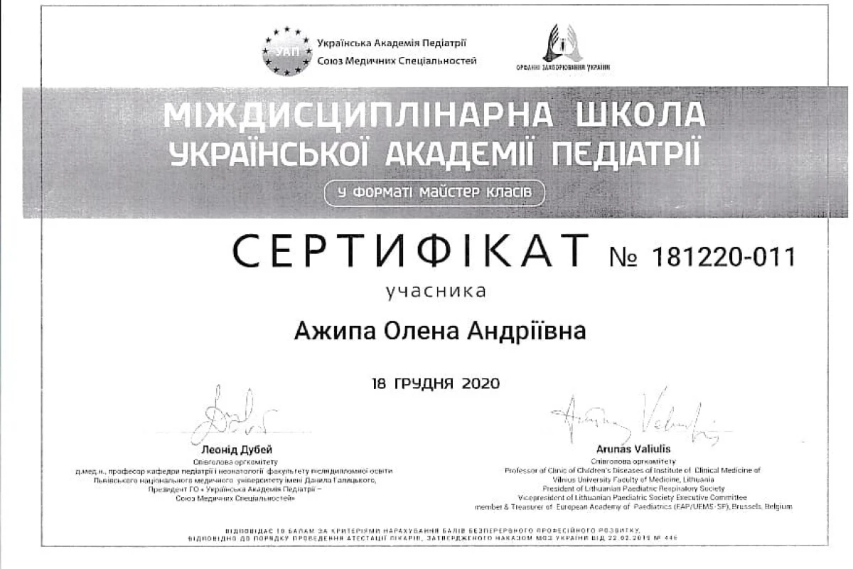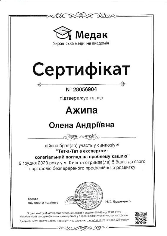 Лікар: Ажипа Олена Андріївна
