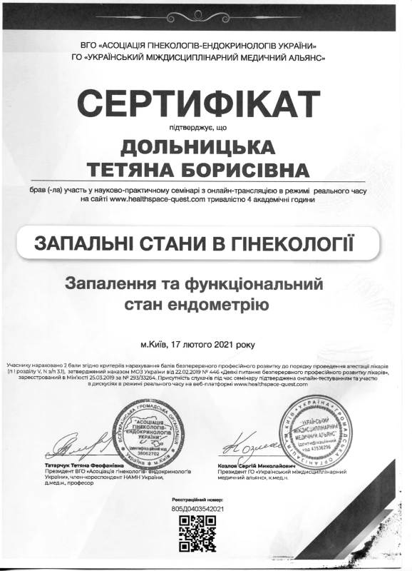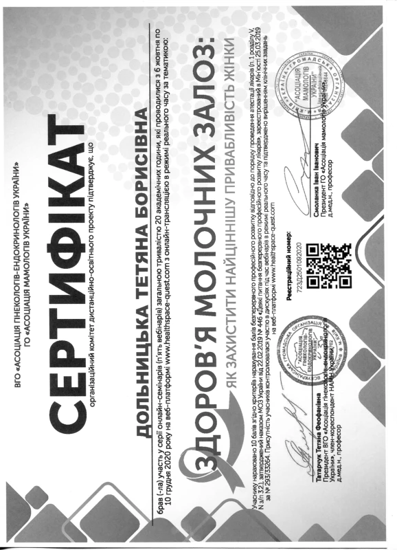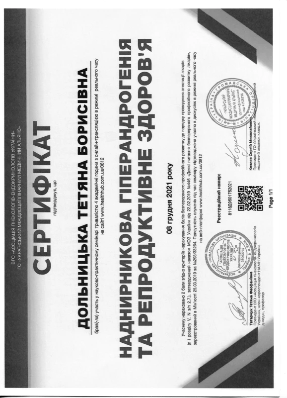 - 2020: ТУ Репродуктивна ендокринологія: нейроендокринний синдром