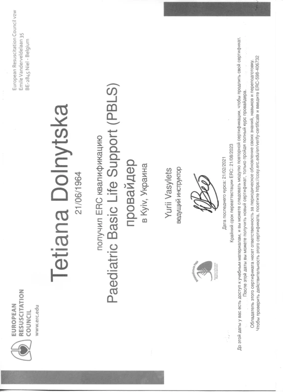 - 2021: Pediatric Basic Life Support (PBLS)