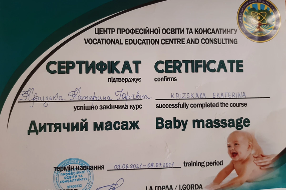 Дуже вдячна Катерині Юріївні за професійний підхід та чуйність! Проходила курс масажів як сама, так і привозила двохмісячного сина - залишилась задоволена в обох випадках! Малюк добре працював під час масажів, покращились фізичні вміння. А моя спина сказала «дякую» після постійного підіймання малюка. Щиро рекомендую! Читати докладніше