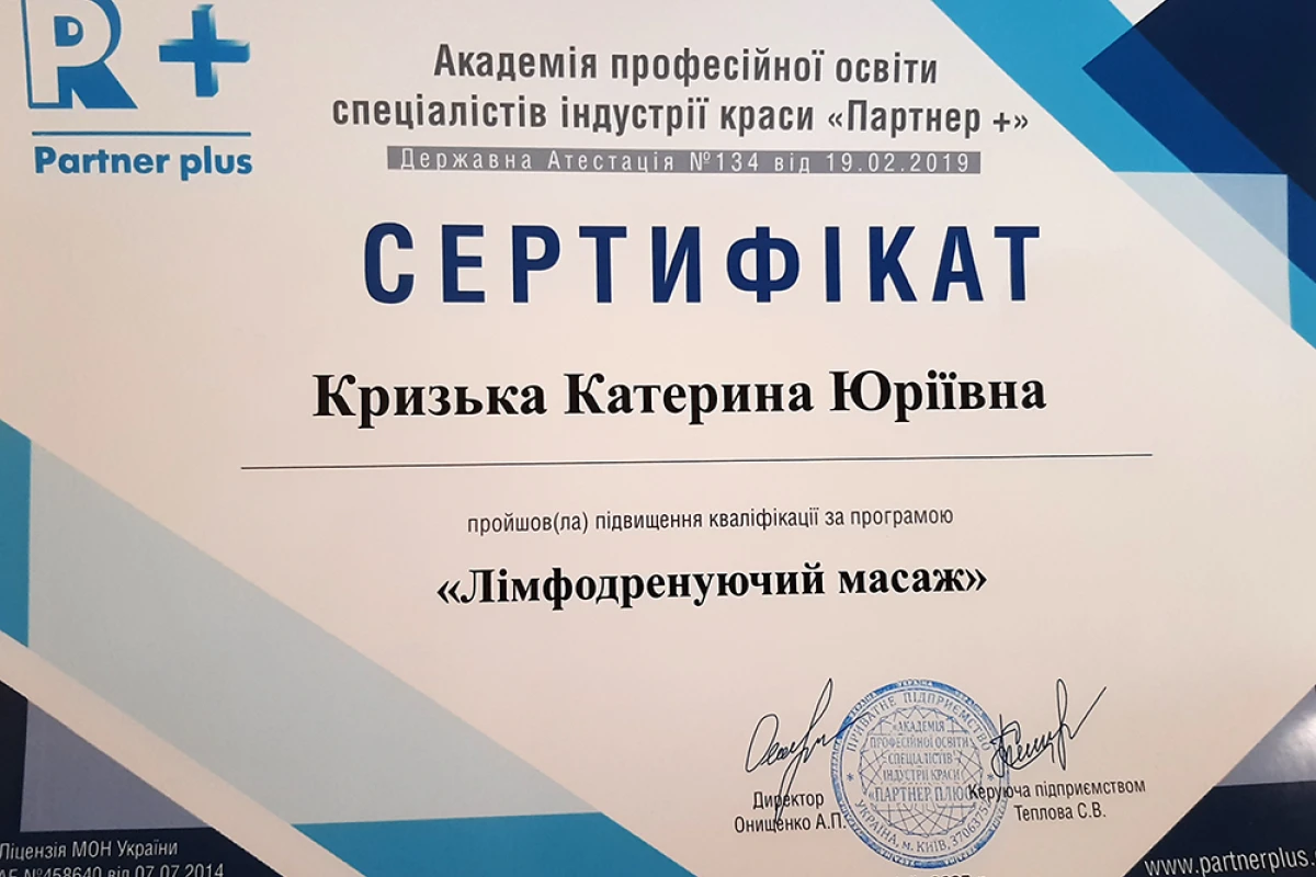Велике дякую пані Катерині Кризькій за її чарівні руки. Завдяки ним моя шия повернулася до повноцінного функціонування. Ви справжній професіонал. Ще раз Велике Дякую. Читати докладніше