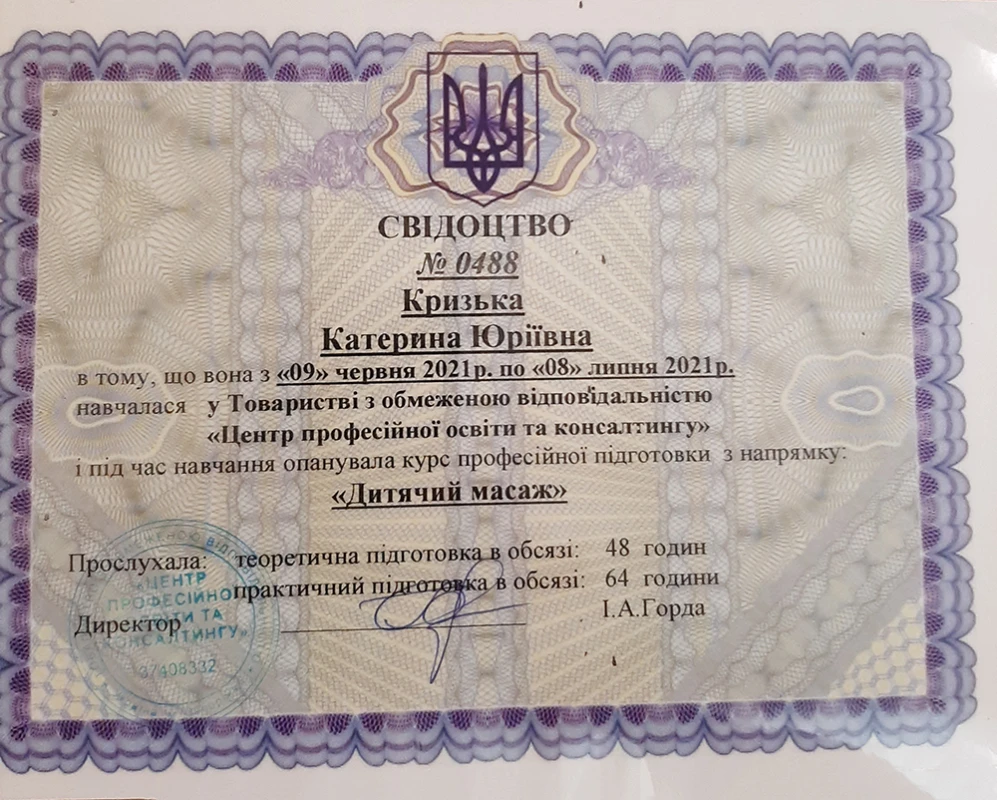 - 2011 - 2014: Сєвєродонецька БЛ, дитячий масажист