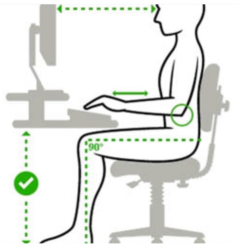 Треба дотримуватись правила «прямих кутів». Тобто, між спиною і стегнами, стегнами і гомілкою повинен бути кут 90 градусів. Сидіти треба з випрямленою спиною.
