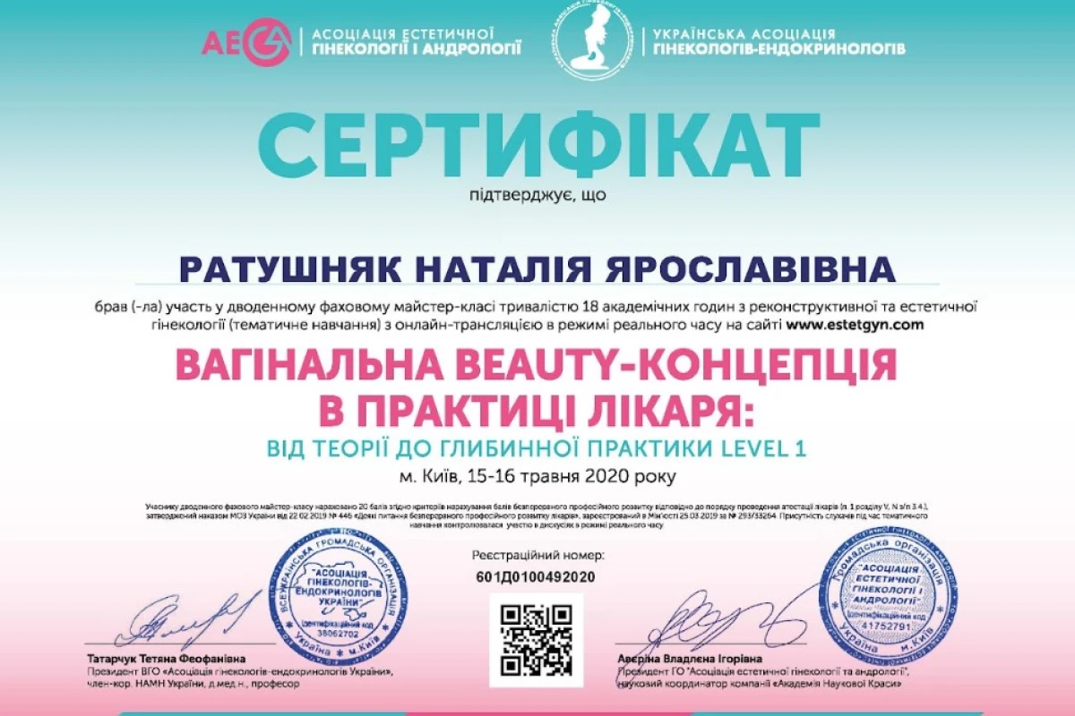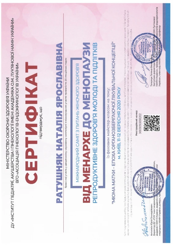 - 2020: ТУ «Актуальні питання ендоскопії в гінекології»