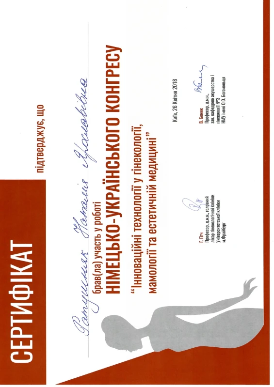 - 2018: Німецько-Український конгрес «Інноваційні технології у гінекології, мамології та естетичній медицині»