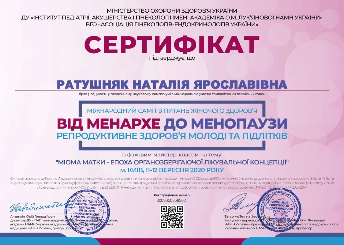 - 2020: «Міома матки – епоха органозберігаючої лікувальної концепції»