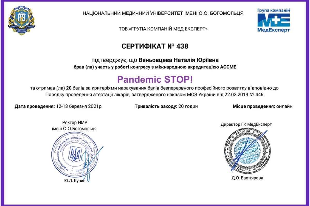 - 2021: Конгрес з міжнародною акредитацією: Pandemic STOP!
